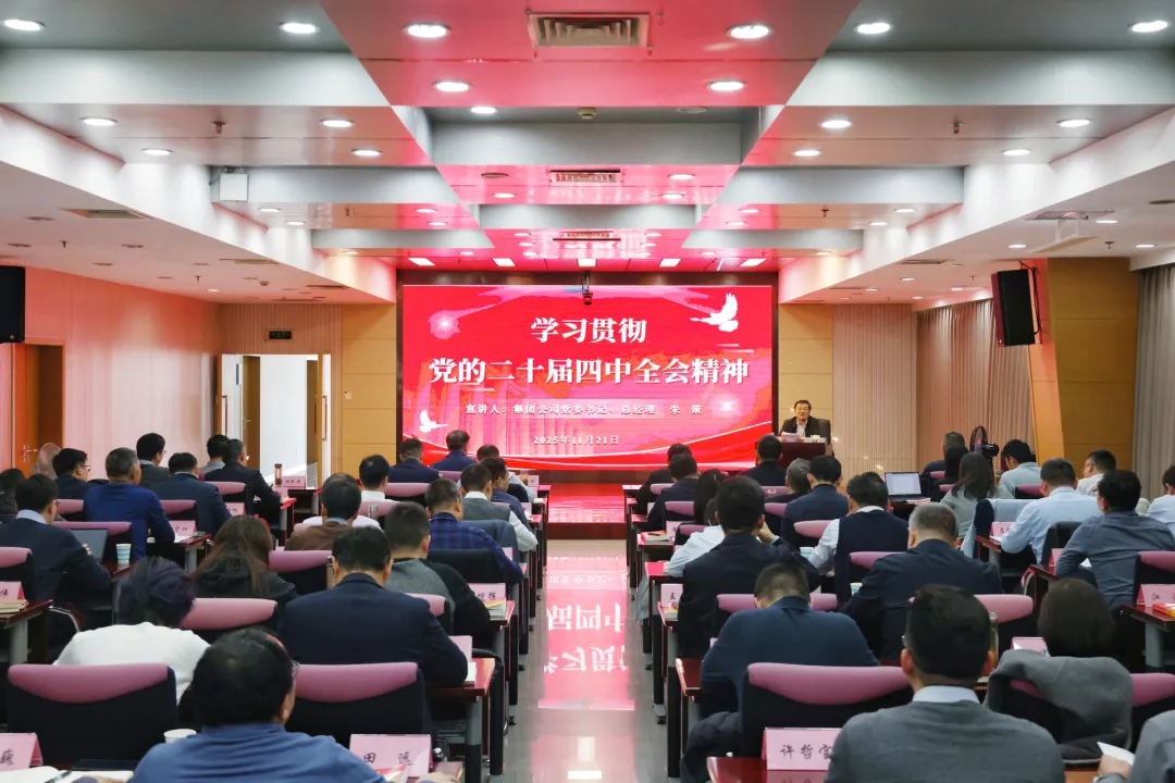 按照省國資委黨委統一部署,11月21日,集團公司舉行學(xué)習貫徹黨的二十屆四中全會(huì )精神宣講報告會(huì )。省國資委黨委宣講團成員、集團公司黨委書(shū)記、董事長(cháng)、總經(jīng)理朱策面向全體員工作宣講報告。