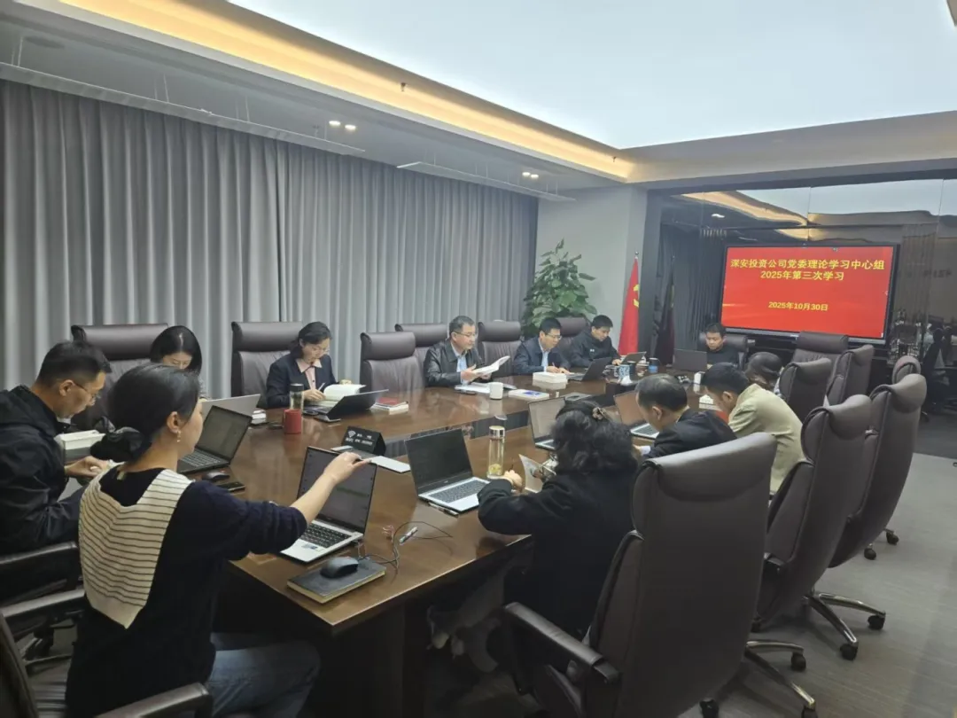 10月30日,深安投資公司召開(kāi)2025年第三次黨委理論學(xué)習中心組學(xué)習會(huì )議,深入學(xué)習領(lǐng)會(huì )黨的二十屆四中全會(huì )精神。會(huì )議強調,要深刻領(lǐng)會(huì )全會(huì )的精神實(shí)質(zhì)與核心要義,高質(zhì)量研究編制“十五五”規劃。要把學(xué)習全會(huì )精神的政治熱情轉化為推動(dòng)改革發(fā)展的強大動(dòng)力。要認真對照全年經(jīng)營(yíng)發(fā)展目標任務(wù),倒排時(shí)間、壓實(shí)責任,以“釘釘子”精神抓好落實(shí)。
